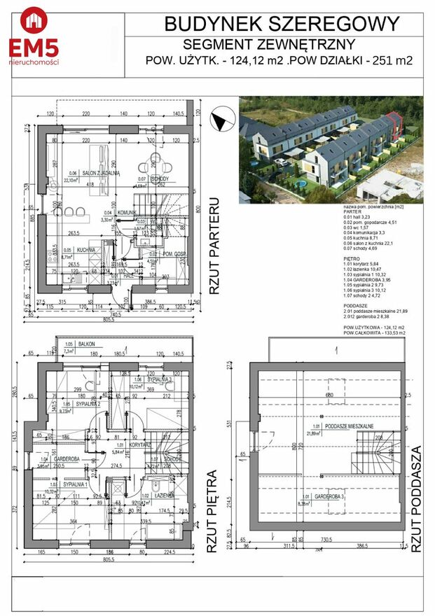- Pow. działki:251 m2